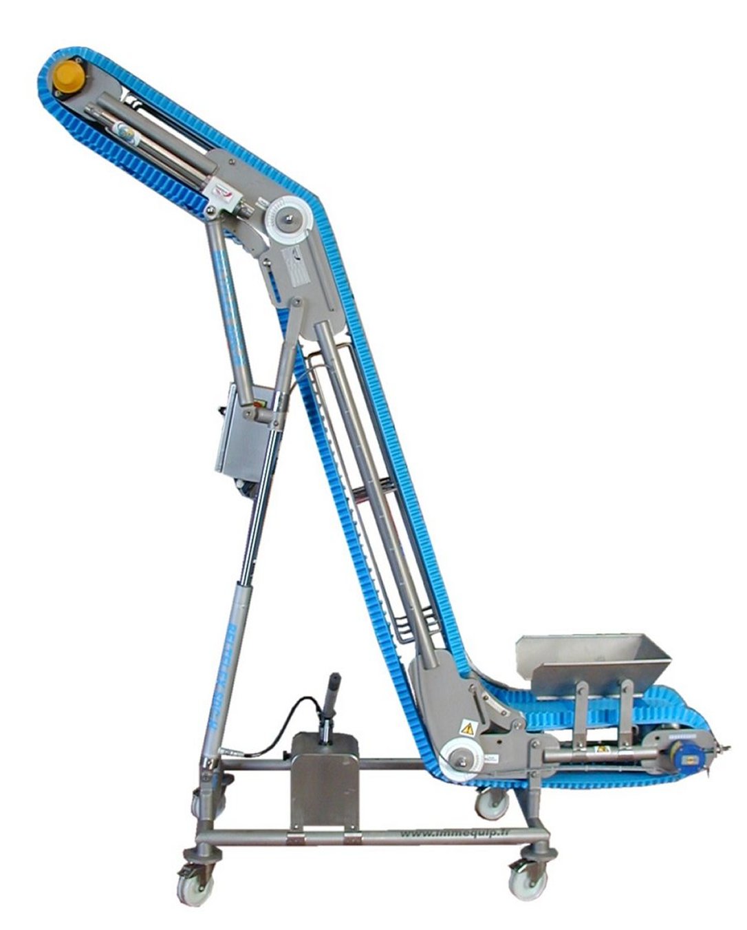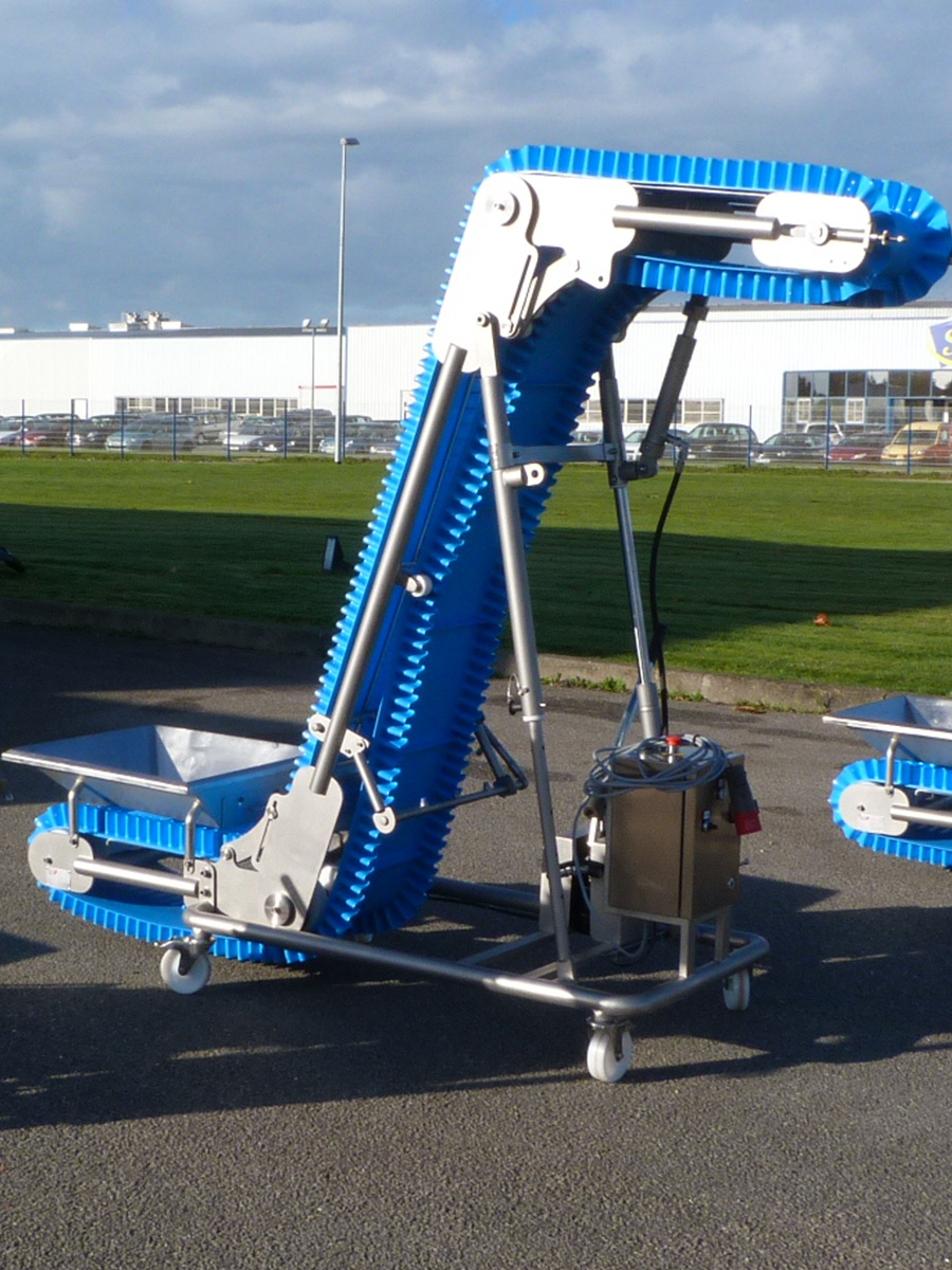 Sa conception tubulaire articulée lui permet de prendre différentes positions de travail. Avec une inclinaison variable de 35 à 75°, il vient s’implanter au plus près des équipements de production. La modification est réalisée par un seul opérateur avec la version hydraulique.