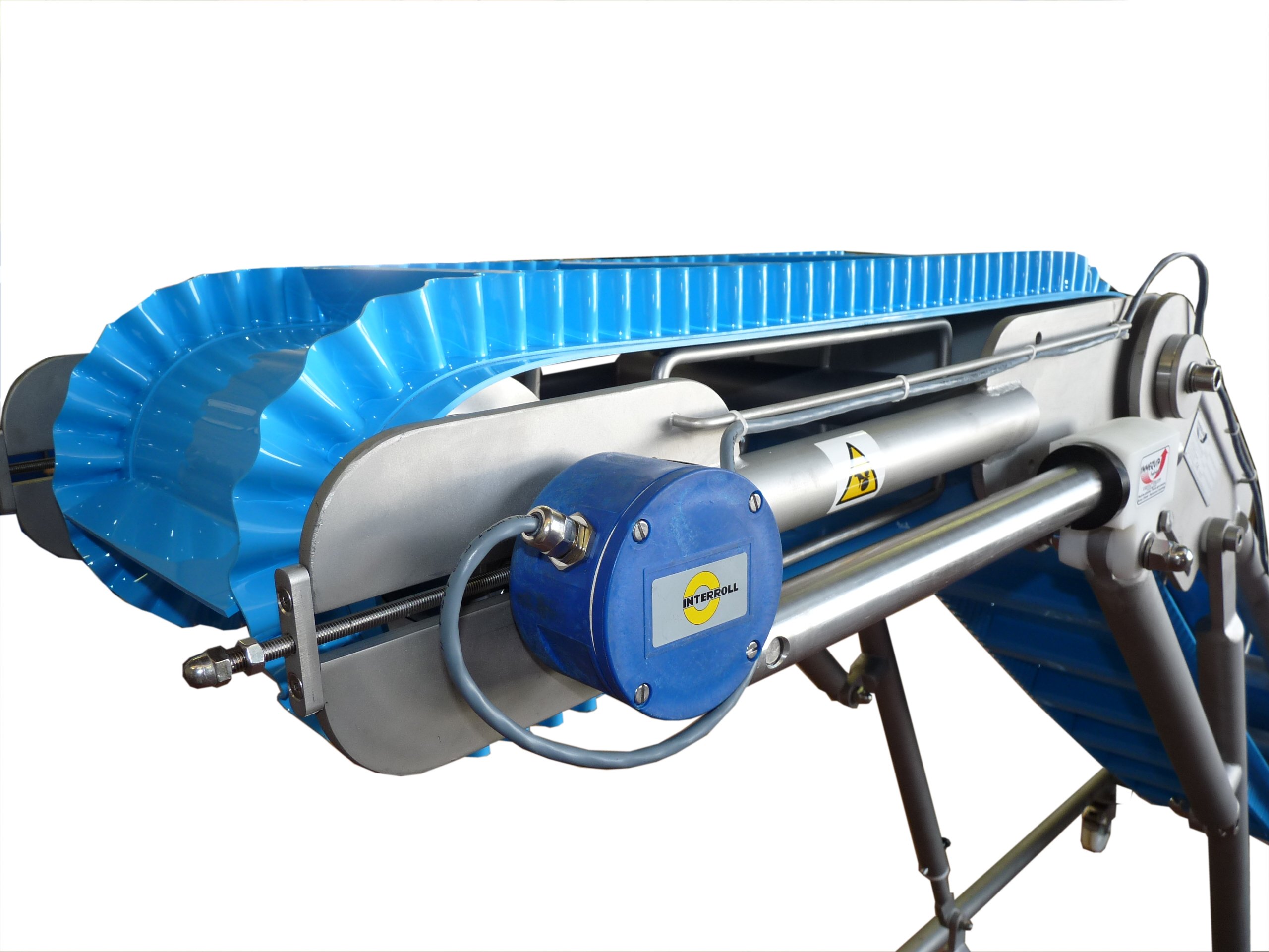 Equipé d’une bande PU homogène à tasseaux SUPERDRIVE VOLTA et d’un tambour moteur INTERROLL sur une conception inox robuste, cet élévateur sera facile et rapide à réemployer sur vos différents PROCESS.